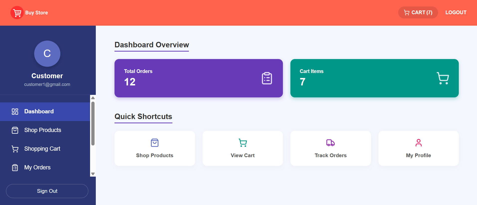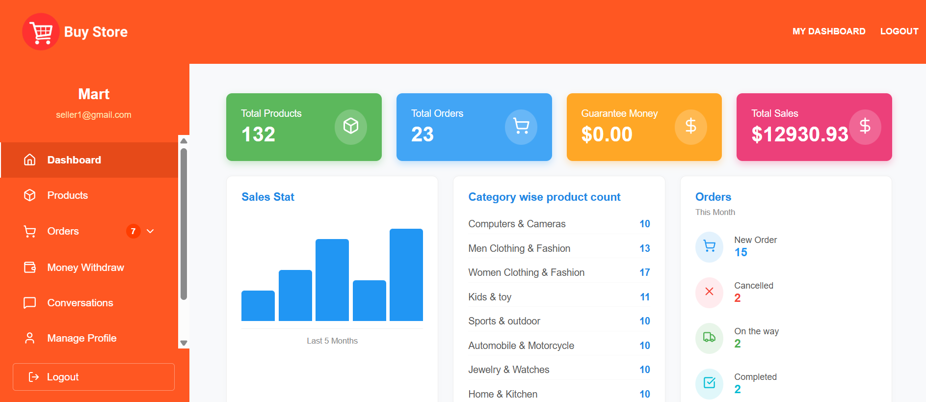 I developed a full-featured multi-vendor e-commerce platform similar to Buystore, where multiple sellers can register, list products, and manage their own stores while customers can browse, purchase, and track orders seamlessly.